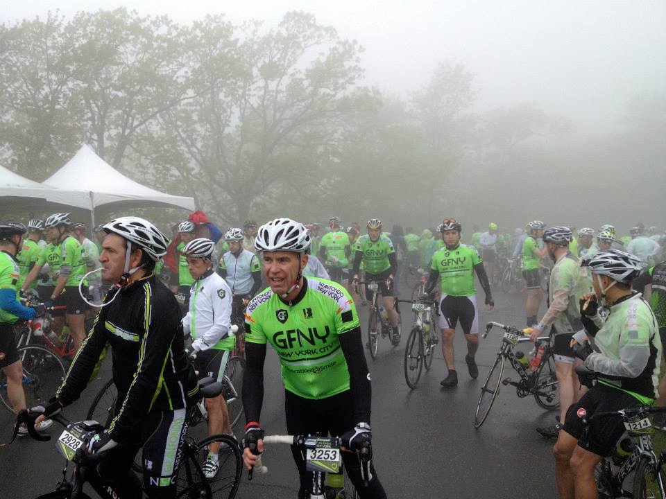 New York baby! 🥳Signing in on the day before the raceChecking out the route, but ignoring the spiky course profile for now 😎4am alarm call to get to the start line. Still smiling and no idea how cold it would be!The race starts from the middle of the iconic George Washington BridgeIt was freezing cold waiting for the race to begin. I totally underestimated it!Wave after wave of green clad cyclists early in the raceDid I mention that the weather was grim that day? Looking back down the Hudson in the direction we started earlier that morning.Nature callsThe roads around Bear Mountain State Park were awesome, especially in the misty conditionsA crowd at the top of Bear Mountain! The energy and enthusiasm of the day were awesome!Proof I made it!Descending Bear MountainSuper fun (and cold) descent