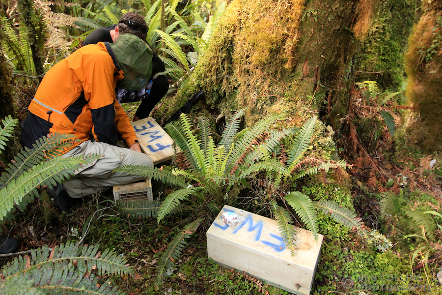Stoats were introduced to New Zealand in the late 1800’s to help reduce the rabbit population, but since then have become a major pest themselves, a predator to the native New Zealand birds, of which some are flightless and easy prey. There is a major conservation drive to save the native birds from extinction by laying stoat traps in the wilds, so the kayak guides were keen to lay a line of traps behind the campsite which could be checked on a regular basis. We joined in and helped carry and set the traps. The traps are like elaborate mouse traps, with a spring loaded hammer designed to kill any stoat (or rat) that steps on the trigger plate whilst trying to reach the bait (meat and an egg). In all we laid about 20 traps in the forest behind camp, cutting a trail and marking each with GPS coordinates. It was an interesting experience and I hope the conservation efforts are successful throughout New Zealand so the native birds have a chance to flourish again.