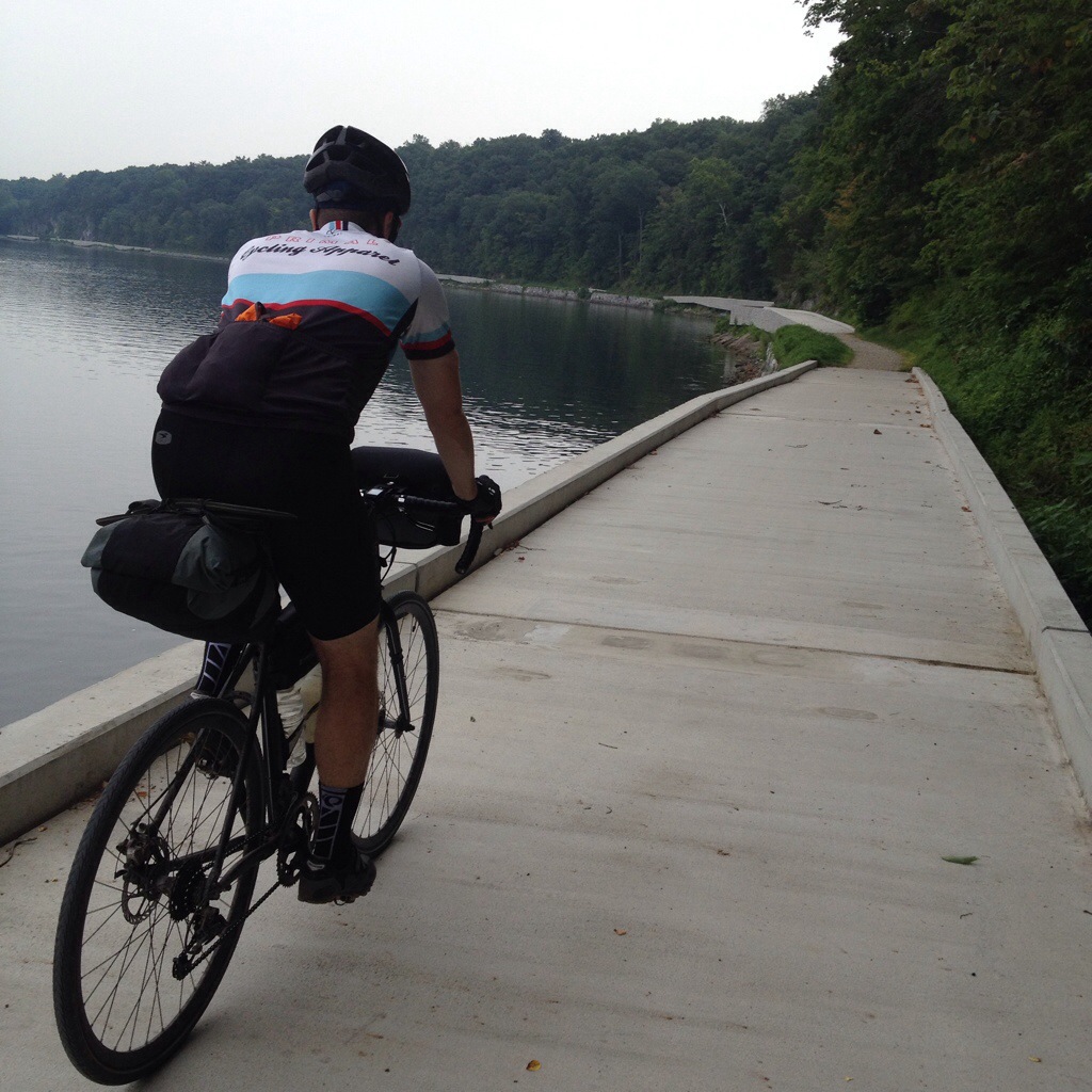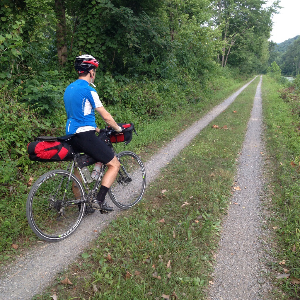 My brother and I are having lunch in Cumberland, MD, at the terminus of the C&O canal and the start of the GAP trail to Pittsburgh, our next target. It’s been two and a half days of really enjoyable riding from DC. Some rough surfaces aside, the trail has been relaxing riding through the woods with great campsites along the edge of the Potomac River. My back hasn’t been too bad and continues to get better. The bikes have been great and we’re not wanting for anything, despite our light setup.