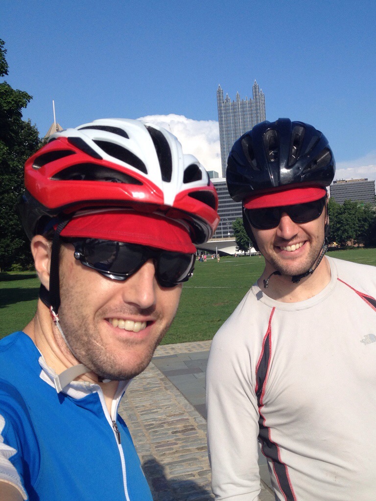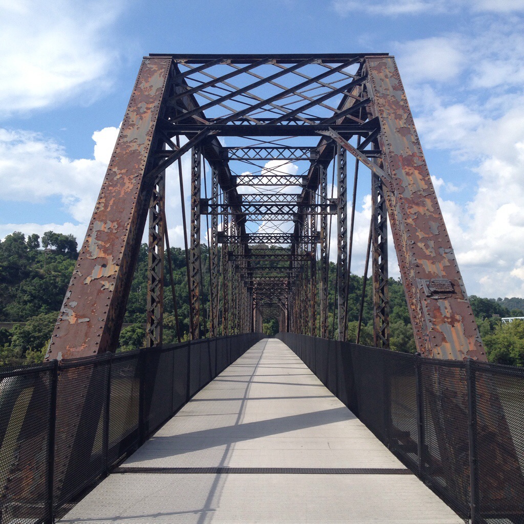 We’re in Pittsburgh now, at the end of the Great Allegheny Passage, having left DC four days ago. It’s been an excellent few days, 340 miles of traffic free cycling, the majority of that in secluded, quiet forests. The section leaving Cumberland was all uphill until the Eastern Continental Divide, 2392ft high. Whilst the gradient was mild and steady the whole way, it still tired us out. The views were spectacular wherever we had a break through the trees.