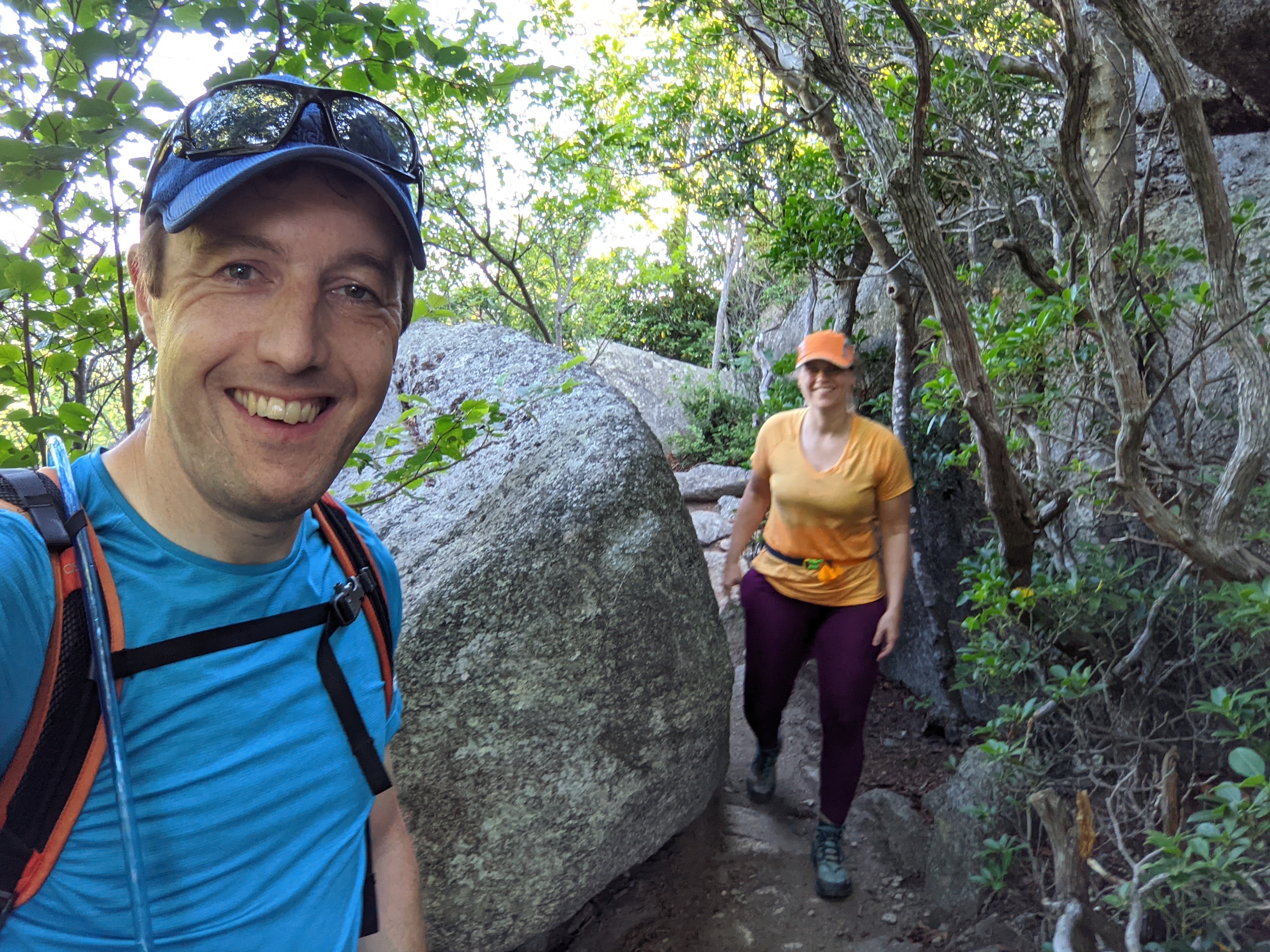 Old Rag is one of the most popular mountain climbs on the East coast (All Trails route), probably on account of the fantastic rock scramble along the summit ridge. We set off early to avoid the crowds and the heat; it was forecast to get to 95 F (35 C). Yikes!