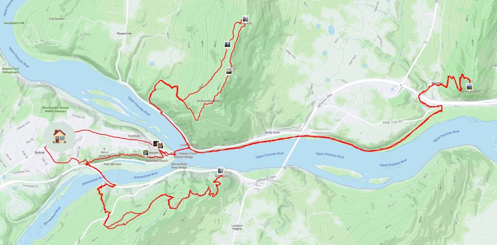 I’ve previously climbed two of them in a day – Maryland Heights and Loudon Heights – but all three in a day is an altogether more challenging prospect. It’s still small fry in the grand scheme of things, but a good challenge for me with current fitness levels and creaky knees.