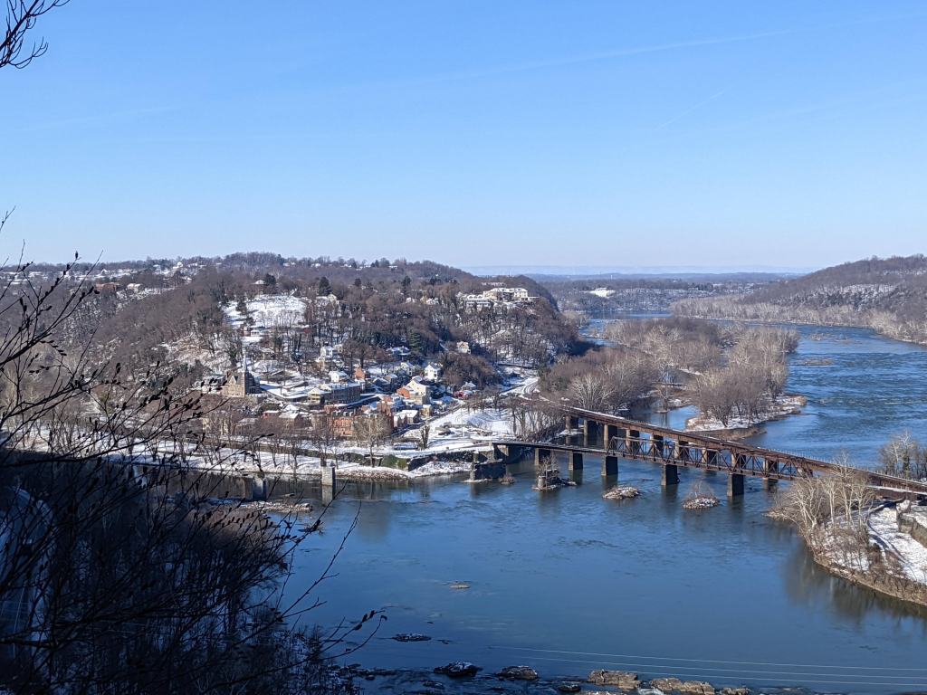 A lovely walk up snowy Loudoun Heights. Couple of inches of snow. Bluebird conditions!