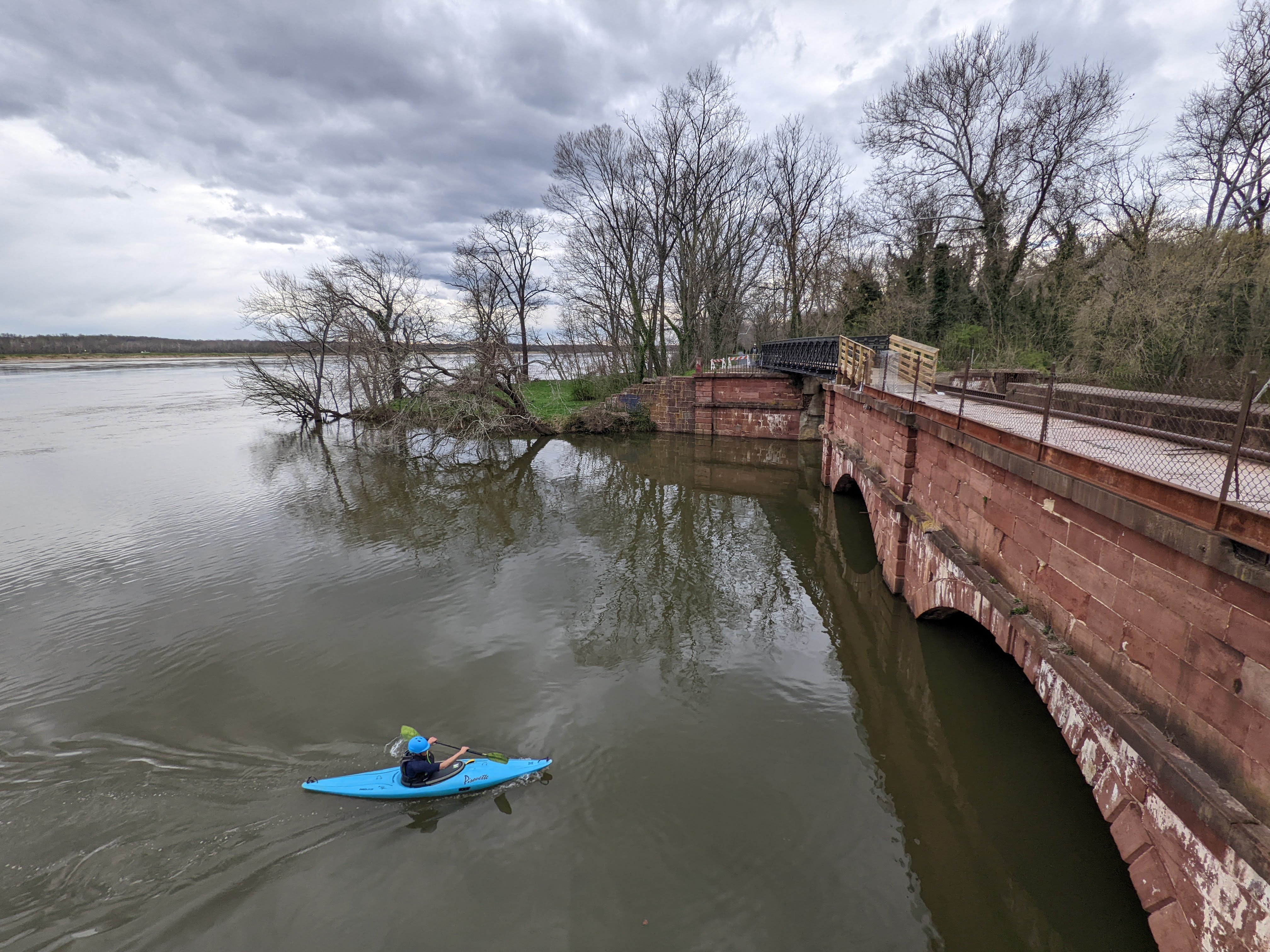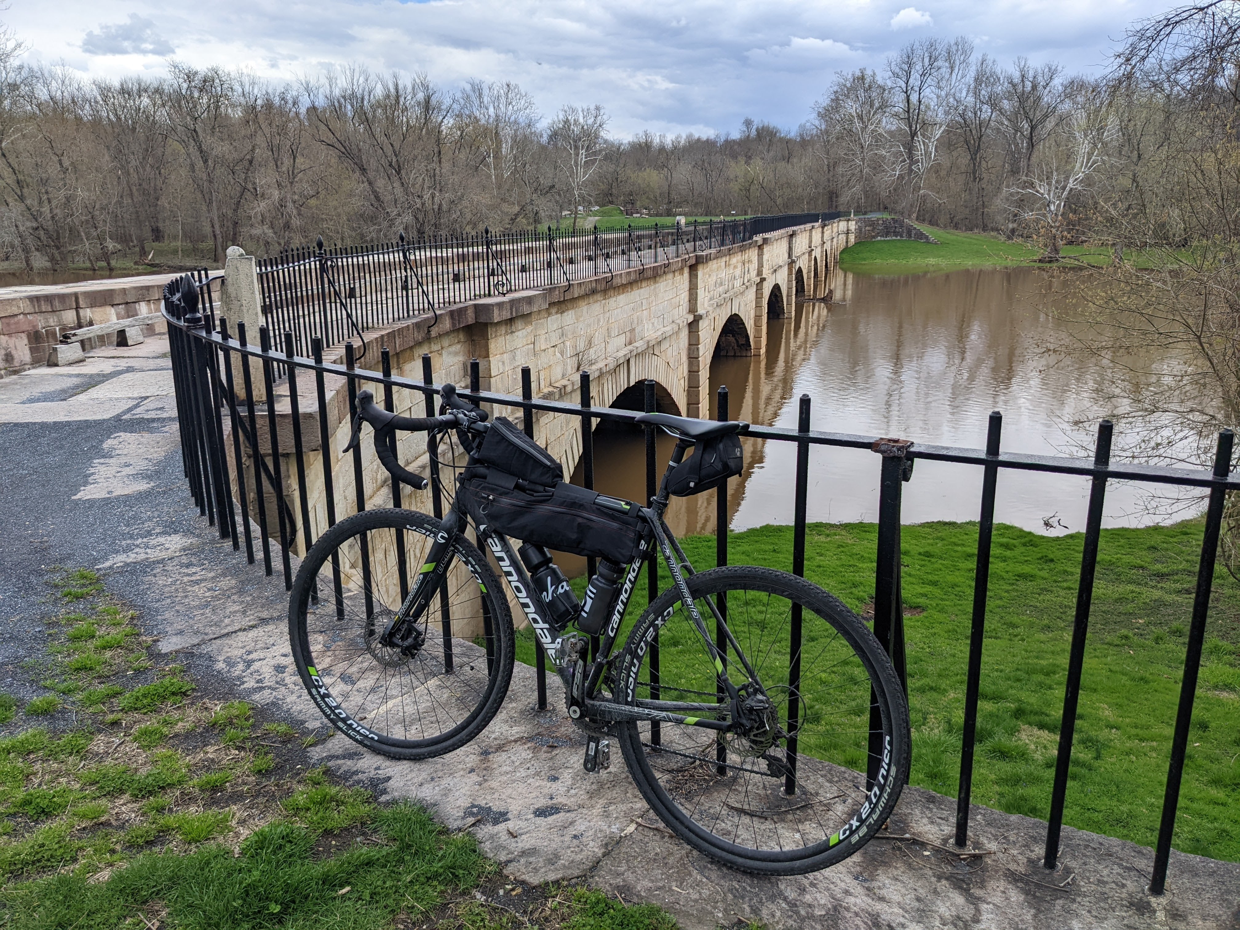 Cycling past an historic canal aqueduct