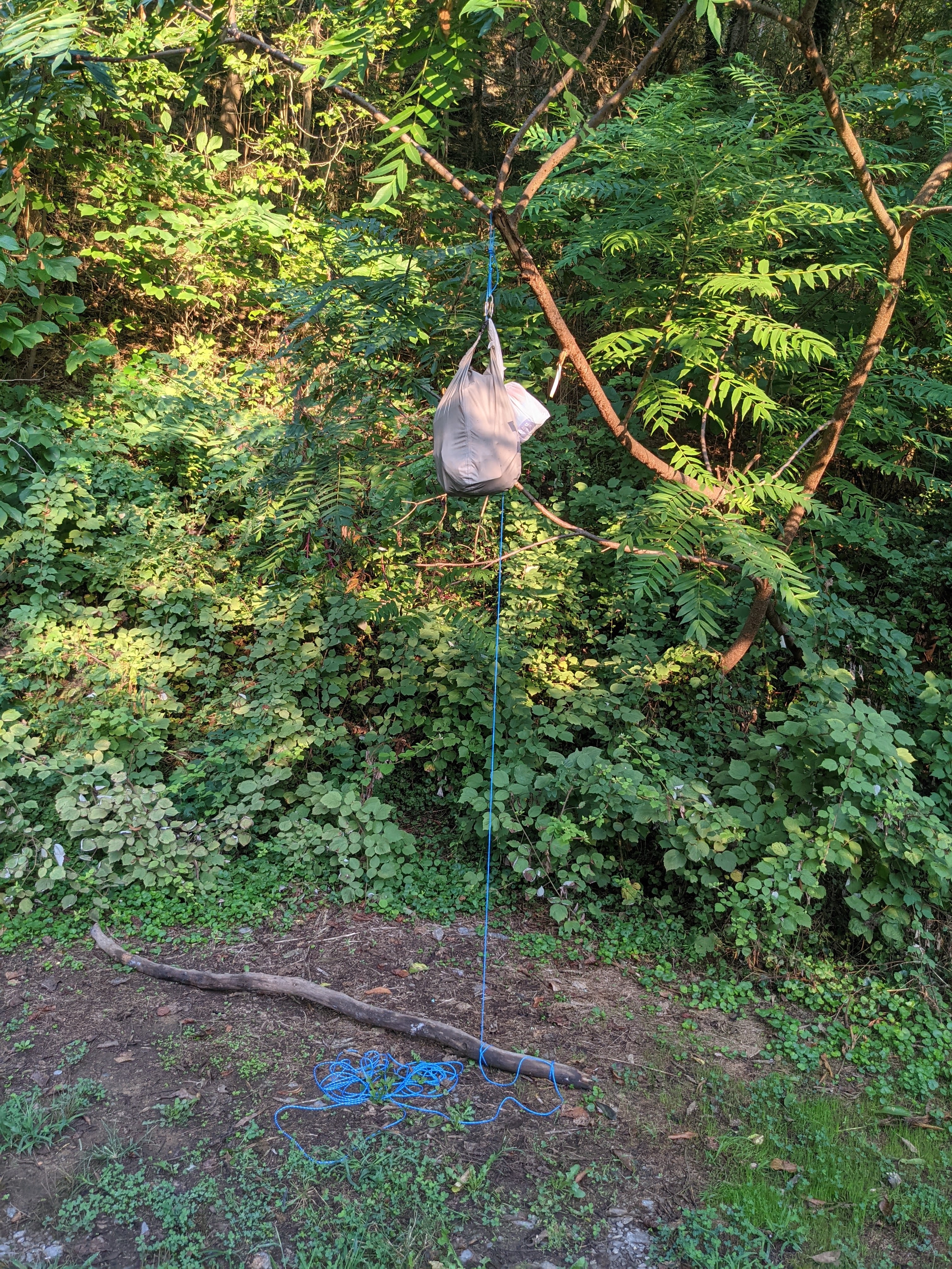 Our first job was to retrieve our food bag that we hung last night. We didn’t hang it to protect from bears (low risk here) but I wanted to protect from rodents in the night. It was also a fun experiment to do with the boys. It worked a treat.