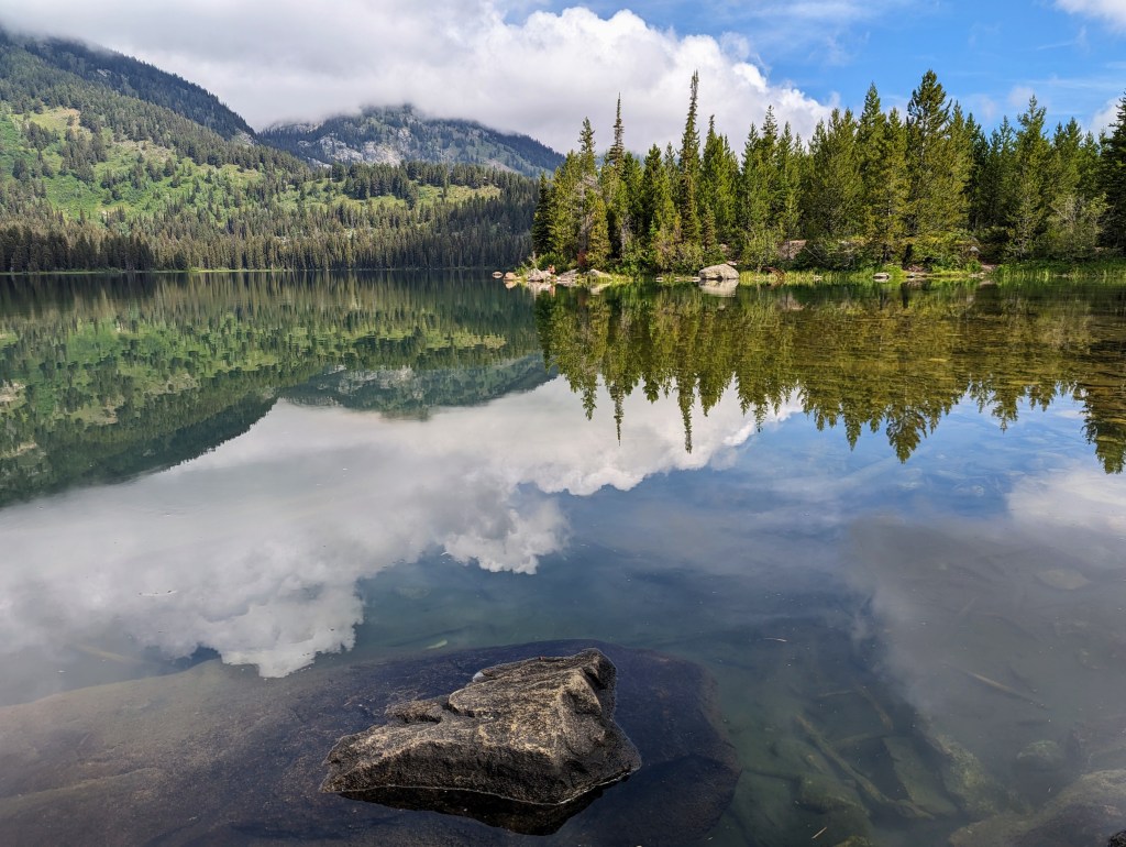 The tops of the Teton range stubbornly hid behind the clouds still, but the reflections in the alpine lakes were gorgeous.