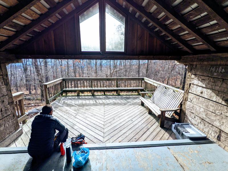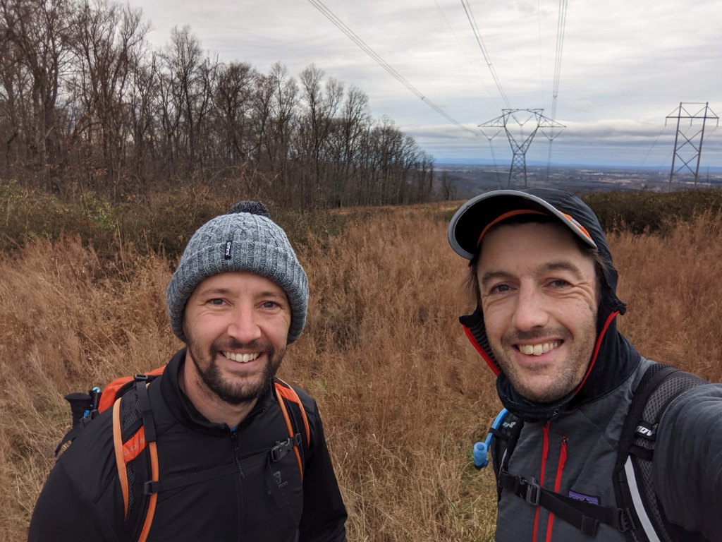 Pete and me at the power line break after climbing up Loudoun Heights on the way out of Harpers FerryPete on the boardwalk near to Keys GapOne of the numerous “blowdowns” along the AT that happen every winterMe and Pete at the David Lesser shelter for our lunch stopPete in the David Lesser shelterLooking west from the ridge line, into West VirginiaPete and me at another view (there are a handful along the route, otherwise you’re in the trees)Appalachian TrailI couldn’t resist climbing this boulder, the first bit of “climbing” I’ve done in years! 😉Walking past the white blazes on the AT (Pete’s photo)Raven Rocks lookoutLooking south from Raven Rocks to the ShenandoahMe and Pete at Raven Rocks lookoutJob done! At the trailhead where we met Lexi for a lift home.