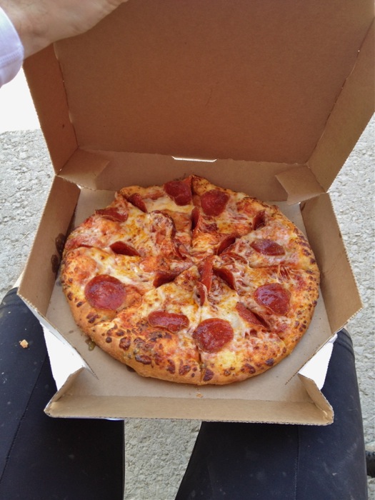 Mid-ride refuelling stop at Domino’s Pizza – it didn’t last long